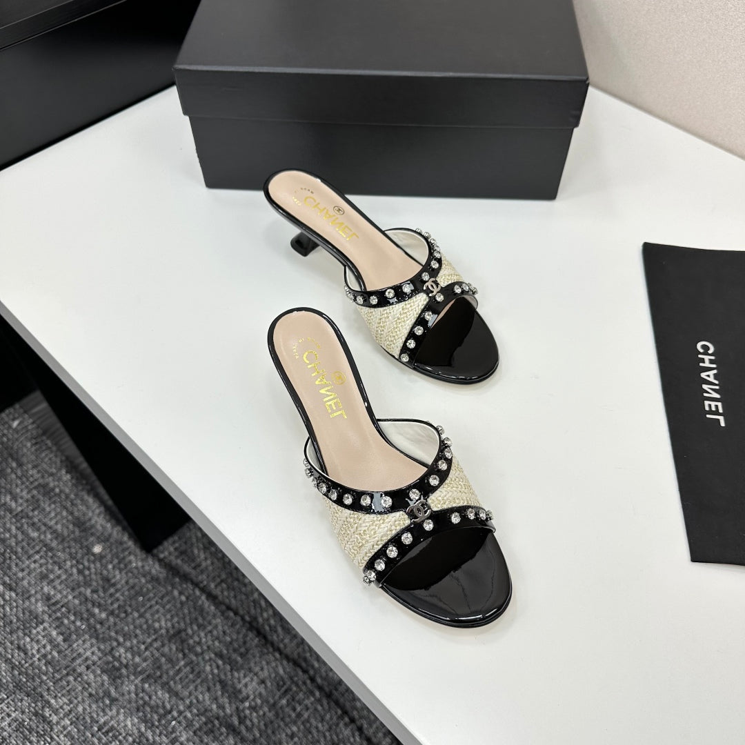 CC HIGH HEEL 25S 50 MM IN WHITE AND LIGHT BEIGE RAFFIA WITH CRYSTALS