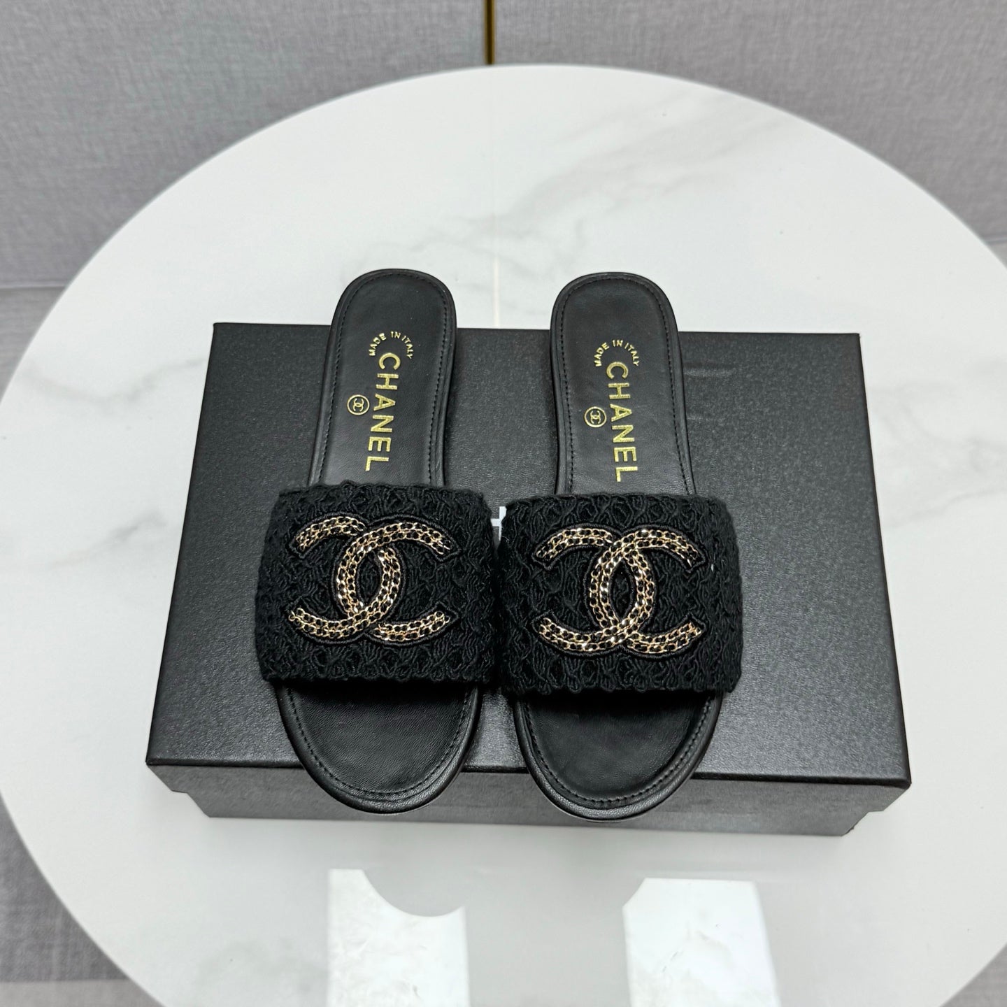 CC SLIDE SANDALS 25S IN BLACK FABRIC AND CALFSKIN WITH LOGO