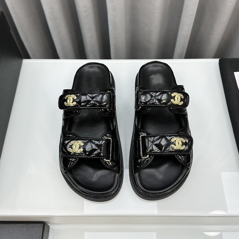 dad sandals black patent lambskin mules