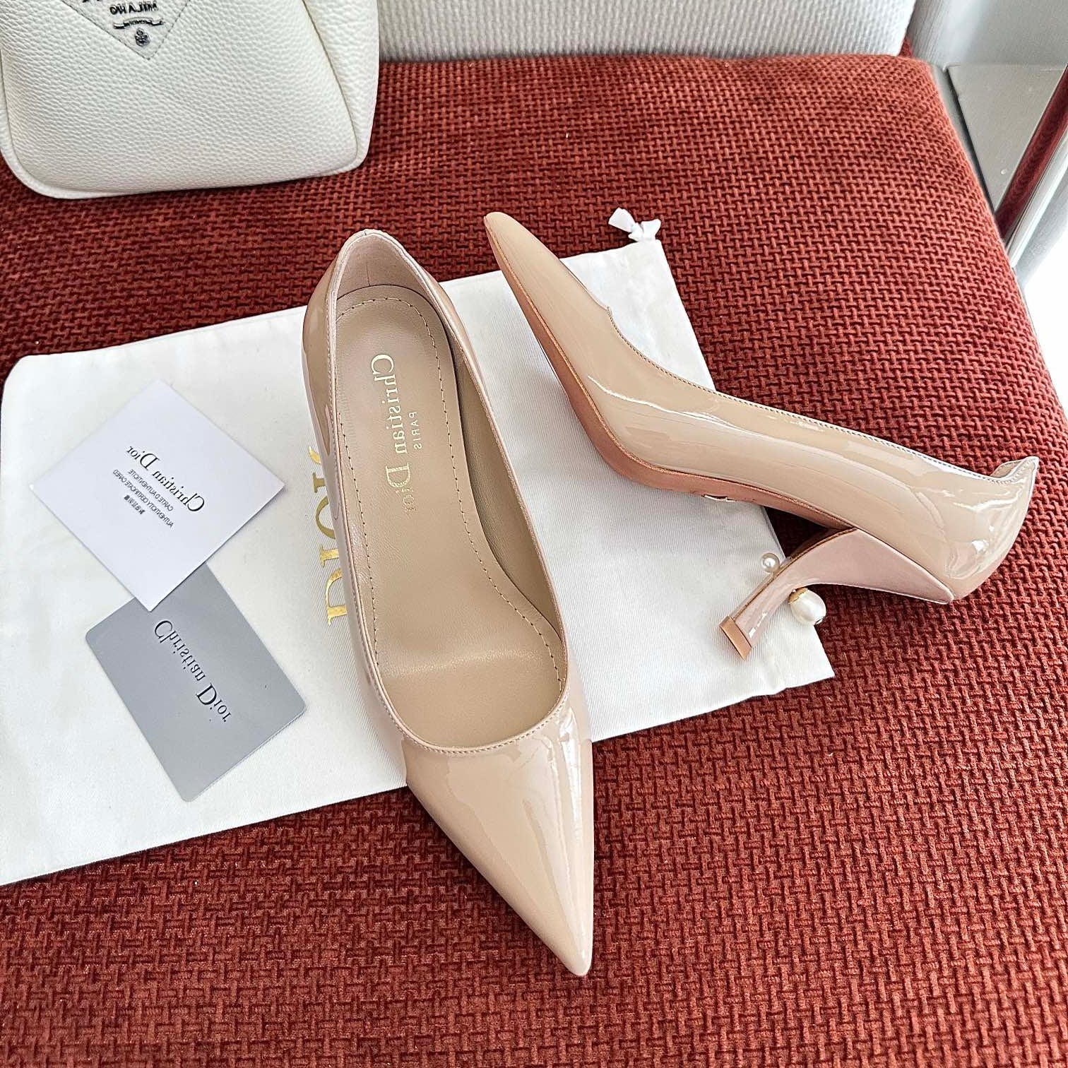DIOR TRIBALES HIGH HEELS 80 MM 25S IN BEIGE GLOSSY LEATHER