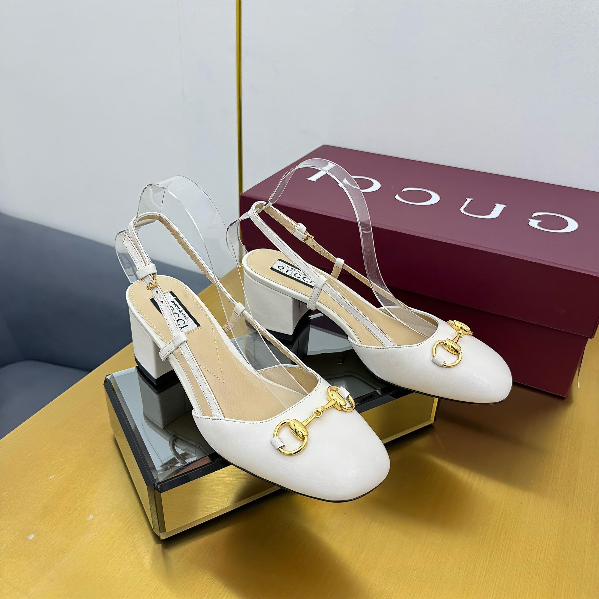 GG HIGH SLINGBACK 65 IN WHITE LAMBSKIN WITH GOLD HARDWARE