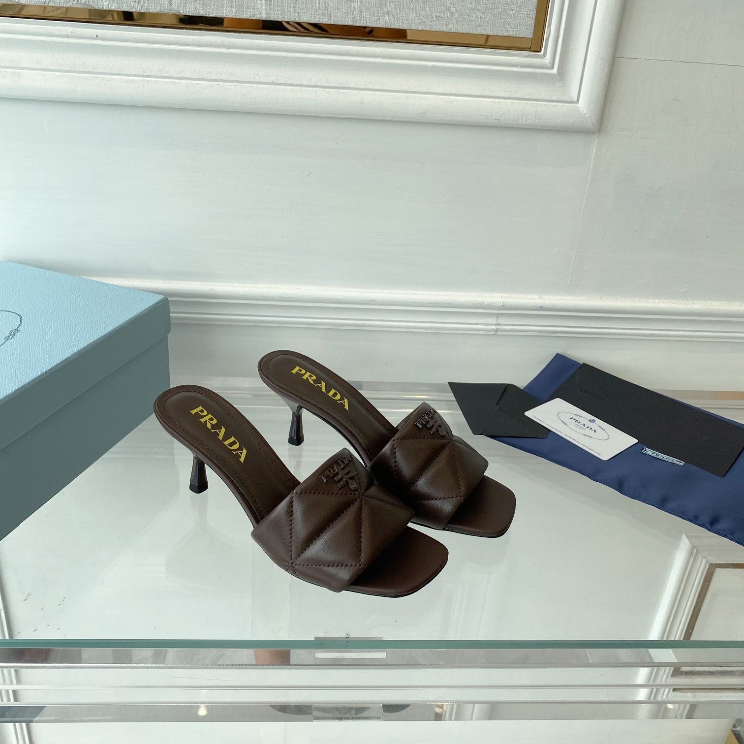 Pra Heeled Sandal 65 Pointed Sole Quilted Chocolate Leather